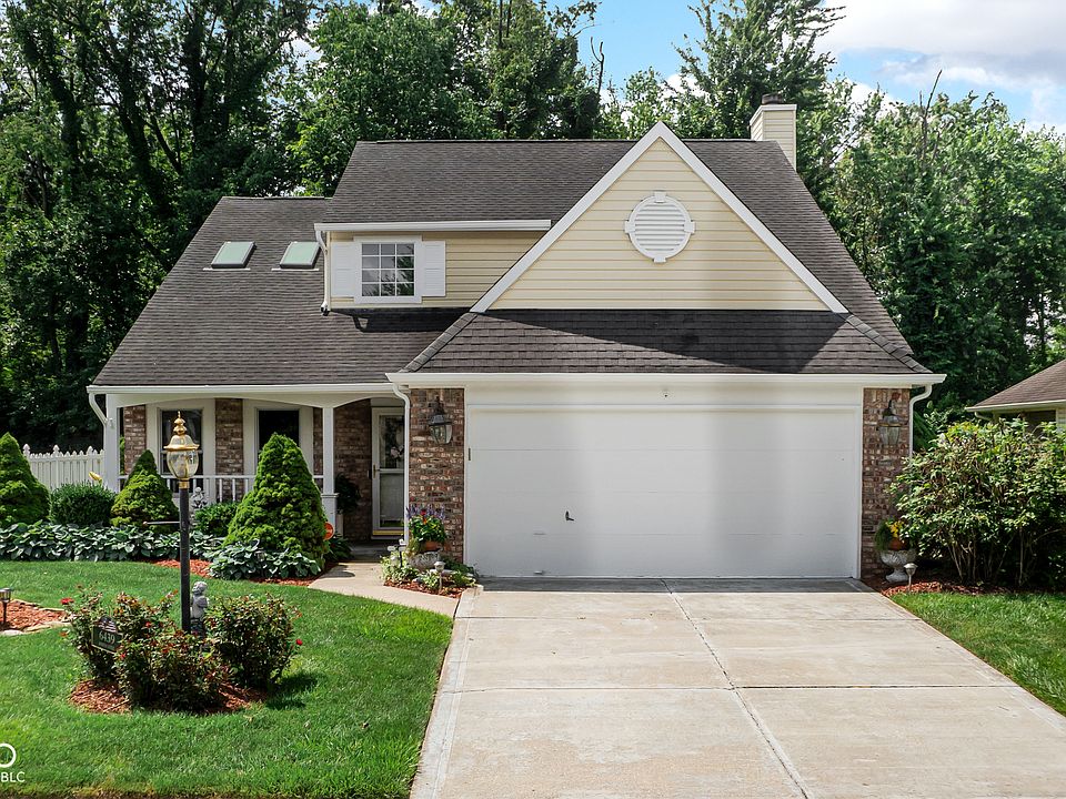 Welcome to this meticulously maintained 3-bed, 2.5-bath home in the heart of Wayne Township, tucked on a quiet street just minutes from shopping, dining, and I-465. With 1,680 sq ft, this one-owner home blends comfort and functionality-ideal for those seeking both indoor and outdoor living. Inside, a light-filled formal living room features cathedral ceilings and skylights, flowing seamlessly into a dedicated dining area. The kitchen features ample cabinet space, a breakfast bar, stainless steel appliances (all stay), and a built-in coffee bar or workspace. The adjacent family room boasts a cozy wood-burning fireplace and direct access to the fully enclosed patio. The main level includes a half bath for added convenience. Upstairs, the spacious primary suite is accessible via French doors with an updated ensuite featuring a beautiful walk-in shower, walk-in jetted tub, double sink vanity and skylight for natural light. Two additional bedrooms upstairs share a full bath with a tub/shower combo. A stair chairlift offers added accessibility and can stay or be removed. From the moment you arrive, you'll notice the meticulously maintained, landscaped yard-complete with mature trees, blooming shrubs, and flowers that elevates the home's charming curb appeal. The fully fenced backyard backs up to a peaceful tree line for added privacy and includes a storage shed and a stunning enclosed paver patio with sliding glass doors and full screening-perfect for year-round entertaining or relaxing with nature views. A second open-air covered patio adds even more versatility for entertaining. Enjoy peace of mind with major updates including a new furnace (approx. 2022), water heater (approx. 2021), and a 30-year roof (approx. 10 years old).