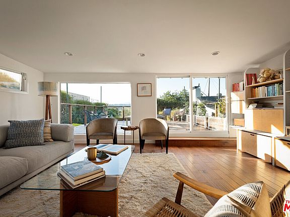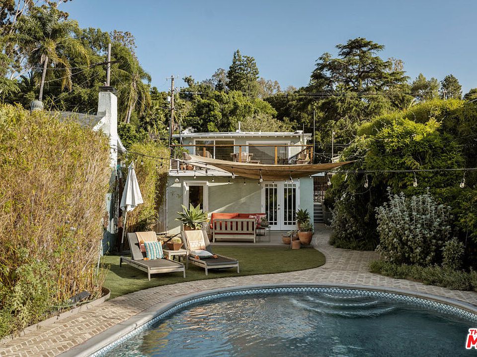 Escape to your own private retreat nestled between Highland Park and South Pasadena, offering the perfect blend of urban convenience and serene natural beauty. This pristine mid-century pool home welcomes you with sweeping views of the San Gabriel Mountains, an effortless open floor plan, wood floors throughout, and an ideal indoor-outdoor flow. The light-filled living room offers large picture windows, custom built-in shelving, and glass doors that open to a spacious deck. The recently remodeled kitchen is perfect for hosting and has been updated with quartz countertops, brass fixtures, a gas range, a dishwasher, a farm sink, new cabinetry, and a large pantry. Down the stairway are the three quiet bedrooms (two that access the backyard), a full bath with a rain shower and double sink, and a roomy laundry area. Step outside into your oasis, where a lush, mostly flat backyard awaits with a Mediterranean blue saltwater pool, native plants, and colorful blooms. Five fruit trees (including avocado, tangelo, apple, lemon, and lime), and six raised planters provide a constant supply of fresh produce. Designed with sustainability in mind, this home features drip irrigation and drought-tolerant landscaping, ensuring easy upkeep without sacrificing beauty. Additional features include a newer roof and a split air & heating system throughout, gated two-car parking, and a storage shed. It's a short distance to both Highland Park's great restaurants and culture and South Pasadena's amazing parks and amenities.