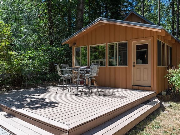 Darling cabin on Hackett Creek. Large back deck terraced to a smaller deck by the creek's edge. Recent Improvements over last year: Large Creekside bedroom has been insulated and finished with redwood siding & new bamboo blinds. New Front Door, Zonal Heaters. Washer/Dryer hookups, built-in Microwave & misc. electrical. The Pellet Stove is two yrs old, Three bedrooms with 2 futons in the Lvrm. Sand filter, 1 hour to PDX. Private Land.