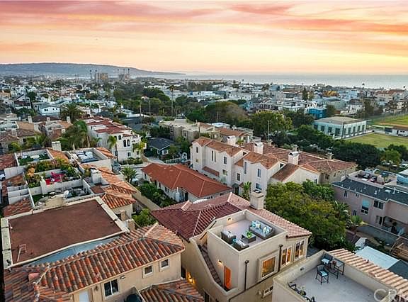 Coastal living at it's best! Private, secluded, free standing rear townhome with a large roof top deck and incredible panoramic ocean views! The upper level offers natural light throughout, custom window treatments, recessed lighting, Brazilian cherry floors, granite counters and stainless appliances. Perfect for entertaining friends and family with bright and open living, dining, kitchen area as well as a large view deck. Entry level is the middle level with a primary bedroom and ensuite bathroom, walk in closet and bathroom adjoining second and third bedrooms. Lower level has a large bedroom with ensuite bathroom that can also be utilized as a family room/office or play room and direct access to garage. West of PCH on a low traffic, quiet (NO OUTLET) street, this home is within walking distance to the Beach, Greenbelt, Pier Avenue Restaurants, Library, Parks, Farmers Market, Trader Joes, Fiesta Hermosa, and you can watch the fireworks on the roof top deck. It is the perfect place to relax, entertain and enjoy the beach life.