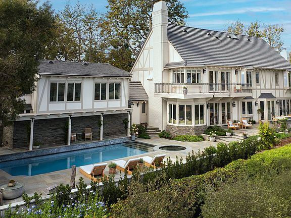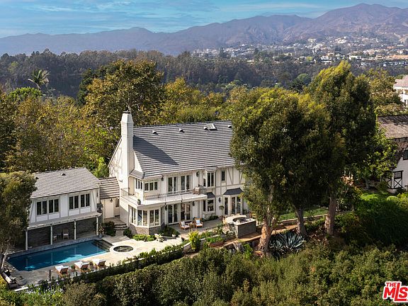 Spectacular gated English estate on coveted Amalfi Drive in the Palisades Riviera. With sweeping ocean, canyon, and country club views, this 5-bedroom, 5.5-bath residence has been reimagined to balance timeless character with modern luxury. Every detail reflects the exquisite renovation, where elegant finishes and authentic charm define the home. A garden arbor and beautiful entry lead to a dramatic two-story foyer. The living room showcases vaulted wood-beam ceilings with woven cane inlay, a limestone fireplace, and leaded glass windows opening to a private view patio. The formal dining room with French doors flows into a gourmet kitchen with a large center island, top-of-the-line appliances, and a sunlit breakfast alcove overlooking the garden. Designed for entertaining, the family room with French doors highlights panoramic views and is fit with a masonry fireplace, custom banquette, and built-in media center. A paneled den with fireplace creates an ideal retreat, while a guest suite, elegant powder room, mudroom, and laundry complete the main level. Upstairs, the primary suite features a fireplace, sitting area, dual closets, and private balcony with breathtaking views. The spa-like bath offers heated stone floors, custom millwork, a ribbed glass steam shower, and a luxurious soaking tub. Two additional en-suite bedrooms, and a playroom with vaulted ceilings complete the second story. A private guest wing with bath and walk-in closet provides flexibility. Venture outside to enjoy beautifully landscaped grounds with mature trees, bluestone patios, a built-in barbecue with entertainment bar, a garden house, and deluxe pool and spa all framed by sweeping vistas. Wide-plank floors, Savant home automation, integrated A/V, Lutron lighting, upgraded systems, and water filtration complete this exceptional home. Just moments from the beach, local shops and restaurants, top-tier schools, Rustic Canyon Park, and Brentwood Country Mart, this one-of-a-kind estate is a truly rare offering for your most discerning clients.
