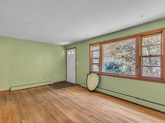 Private 1212 sq. ft. Ranch located on quiet road. Set back from the road and situated on 0.69 acres, this home includes hardwood floors and a private backyard. The main entrance leads to a front facing living room with large picture window and a wood burning fireplace. The kitchen includes a dining area, tiled backsplash, dual sinks and access to a rear facing family room. The family room is bathed in natural light and contains hardwood floors, chair rail moldings, French doors to a 11' X 8' screened-in porch and access to a sunny rear deck. The main level also includes 3 hardwood floor bedrooms and a tiled-wall full common bath. The lower level includes a partially finished recreation space with walkout to 1-car garage. The grounds are private and include a 2-tiered deck with backyard access. Newer Buderus Boiler and Roth oil tank.