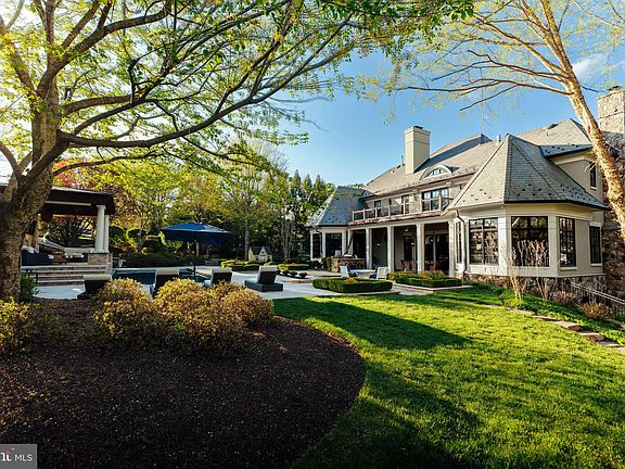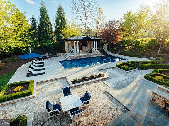 644 Deerfield Farm Court is a classically refined Great Falls oasis, meticulously reimagined with sophisticated craftsmanship and timeless elegance. Just under two acres with walkability to the Great Falls Village, that is hard to beat! Privately positioned on a tranquil cul de sac near Great Falls Village and River Bend Country Club, the home features over $2,000,000 in upgrades... handcrafted steel gates that open into your circular driveway, manicured landscaping, stucco and stone siding, copper gutters, and a slate roof. The resort style backyard showcases a saltwater pool, elevated veranda with portico, firepit, hot tub, and lush gardens of cherry blossoms and hydrangeas. Inside, grand double doors open to 9,000 sq. ft. of luxurious living. The chefs kitchen boasts custom cabinetry, marble countertops, SubZero and Wolf appliances, and a 7-ft wine refrigerator. Formal and family rooms with fireplaces flow seamlessly outdoors, while the sunroom doubles as a world class office. The upper level hosts a primary suite with a private balcony, sitting room, dual sided fireplace, walk in closets, and spa bath, plus 3 additional ensuite bedrooms and laundry. The lower level offers a custom mahogany bar, wine cellar with 200 year old refurbished door, media and game areas, gym, and guest suite (5th bedroom). Just blocks from Great Falls Elementary and a short walk to the Village Centre, this residence blends architectural mastery, resort-style amenities, and a premier location—redefining luxury living in Great Falls. Welcome home!