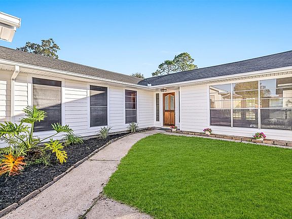 Charming single-story home in Friendswood’s established Sunmeadow community offers 3 bedrooms, 2 full baths, and fresh updates throughout! A lush, private front courtyard with fresh landscaping sets the tone for this inviting home, featuring spacious living areas with high ceilings, a cozy wood-burning fireplace, and seamless flow into the sunlit dining area. The kitchen boasts sleek black granite countertops, a classic subway tile backsplash, and crisp white cabinetry for a clean, timeless look. The entire house, including the serene primary suite and secondary bedrooms have been freshly painted and it's ready for move-in! Step outside to a covered patio overlooking the expansive 0.26-acre lot with no back neighbors—backing to endless open green space for added privacy. A powered storage shed adds functionality, and the home is ideally situated within the highly sought-after Friendswood ISD.