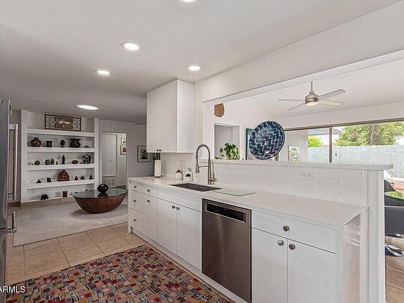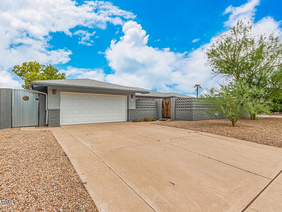 Step inside to a masterfully redone home where style and functionality create a beautiful living space featuring modern comfort and timeless elegance. - Some of the features include: Vaulted ceilings, Updated bathrooms, Gorgeous remodeled kitchen, Two car garage, Huge glass sliding doors to back patio, Dual pane windows, Tons of natural light, Brick paver patio in the back yard, Rain gutters and a harvesting system. This is a beautiful home in a very convenient Tempe location close to freeways, jobs, entertainment, ASU and more!