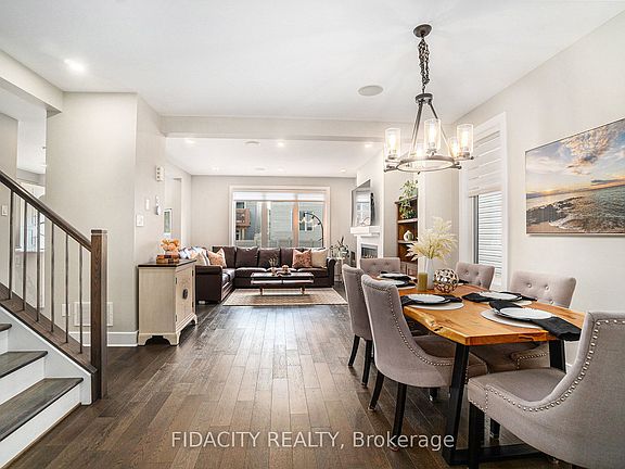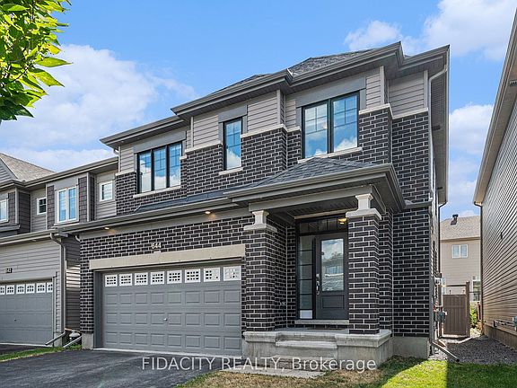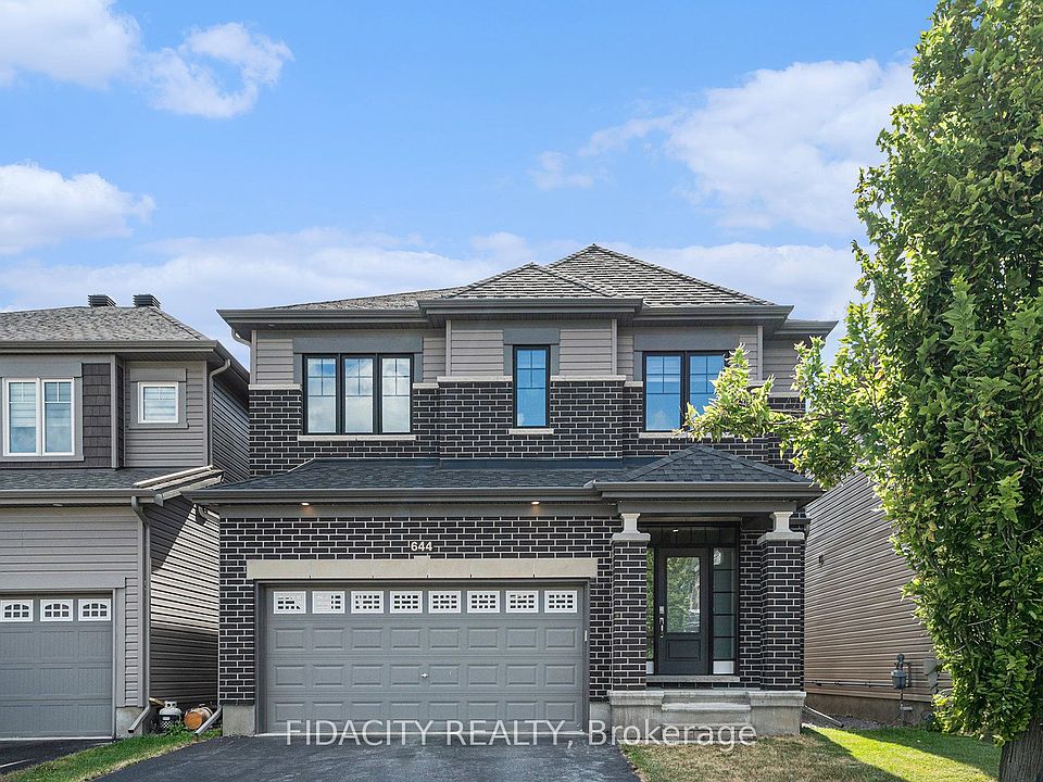 A modern family home in Stittsville: 644 Eagle Crest features a bright open layout, chefs kitchen, 4 bedrooms, loads of upgrades and a landscaped fenced yard. The main floor is fully open concept with a spacious living room and a sleek fireplace, a dining area with designer lighting, and a chefs kitchen with a Calacatta Quartz waterfall island, pantry, farmhouse sink, Monogram gas stove with griddle and convection oven, Frigidaire Professional appliances, wine fridge, herringbone marble backsplash, and tall 40 inch cabinetry. Triple-panel patio doors leads to the backyard, complete with a large techo-bloc interlock patio, raised planters, grass area and full PVC fencing. Upstairs you will find 4 bedrooms, including a primary suite with a walk-in closet and spa-like ensuite with a freestanding soaker tub, oversized glass shower with waterfall head, quartz counters, dual sinks, and Moen fixtures. Upstairs also hosts a convenient second-floor laundry area with Electrolux steam washer/dryer. The finished lower level offers even more living space with a large family room, custom wet bar/kitchenette, HDMI wiring for a future projector, in-wall audio cabling, plenty of storage and a bathroom rough in. Additional highlights include wide plank hardwood floors, hardwood staircase with open railings, pot lights, EV charger, central vac with kitchen kick plate, Ecobee smart thermostat, Yamaha ceiling speakers, and a double garage with smart opener. Set in a family-friendly neighbourhood close to parks, trails, restaurants, gyms, coffee shops, golf courses, shopping, highway access and some of Stittsvilles top-rated schools, this home checks all the boxes for modern family living.