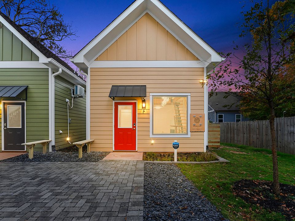Discover a rare opportunity to live in a standalone tiny home right in the heart of Atlanta. This thoughtfully designed cottage offers a modern, airy feel with 20-foot vaulted ceilings and a floating staircase leading to a spacious loft bedroom with a large closet.