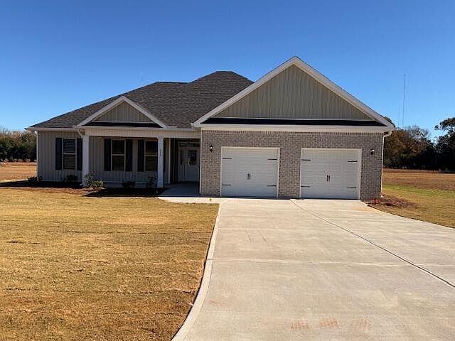 #CarbonConstruction Heather Plan! Welcome home to the Heather Plan! After a long day, unwind on the inviting rocking chair front porch, where you can take in the charm of the beautifully landscaped yard. Step inside the spacious foyer, where luxury wood-look vinyl plank flooring, crown molding, and soaring high ceilings greet you with elegance. The kitchen is a chef's dream, featuring granite countertops, a full stainless steel appliance package, and a large island that seamlessly connects to the breakfast area and great room. Host memorable family gatherings in the formal dining room, adorned with exquisite coffered ceilings and classic wainscoting. The primary suite offers a touch of luxury with its tray ceilings and recessed lighting, creating a relaxing retreat. The en-suite bath is designed for comfort and style, boasting dual vanity sinks with framed mirrors, a large garden tub surrounded by tasteful tile, a custom walk-in tiled shower with a built-in niche, and an expansive walk-in closet. Don't miss the rear covered patio, perfect for relaxing evenings or hosting a summer barbecue. These are not actual pictures of the home.