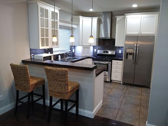 - Beautifully remodeled and functional kitchen. Landlord provides the stove, dishwasher, and refrigerator.