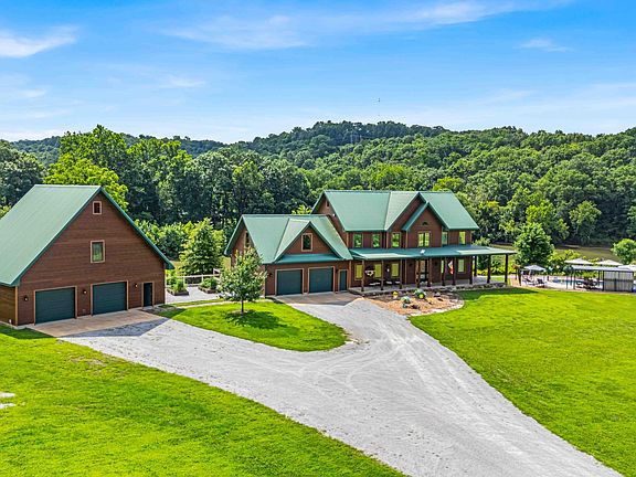 A once-in-a-lifetime opportunity to own pristine riverfront property on the North Fork of the White River--a world-class trophy trout stream in the heart of the Missouri Ozarks. Located in the exclusive, gated community of Northfork Village, this custom-built mountain-rustic ranch-style estate offers top-tier luxury, breathtaking scenery, and unmatched access to some of the clearest spring-fed waters in the state. With only four homes in the community, privacy and tranquility abound.Set on 4.82 manicured acres spanning two lots, this property boasts unrivaled river frontage, panoramic views of the Ozark Hills, and a gently sloping yard for direct access to the water--ideal for fishing, kayaking, floating, or simply relaxing.Main Residence - Designed for Comfort and ClassOffering 4,885 sq ft of well-appointed living space, the main home includes 5 spacious bedrooms and 6 bathrooms, blending refined craftsmanship with rustic charm.Interior Highlights:Chef's dream kitchen featuring Wolf and Sub-Zero appliances, solid surface countertops, custom cabinetry, and a large prep islandOpen-concept living area with soaring ceilings and a see-through fireplace connecting to a cozy sitting roomElegant master suite with fireplace, sitting area, luxurious bath, and oversized walk-in closetFinished walkout basement with wet bar, guest suite, full bath, and ample storageDurable Diamond Kote engineered wood siding and metal roofOutdoor Living - Your Private Resort Awaits:Resort-style fiberglass saltwater pool with surrounding patio and lounging areasExpansive deck & patio spaces for entertaining and relaxingScreened-in covered deck--perfect for year-round outdoor enjoymentProfessionally landscaped grounds with easy riverbank access and stunning views