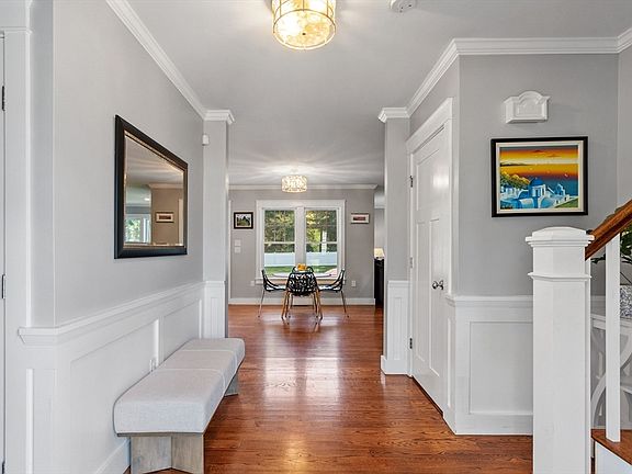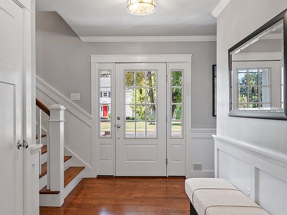 Impeccably upgraded and move-in ready, this stunning Colonial offers nearly 4,000 sq ft of luxurious living across four finished levels. Built in 2018 and thoughtfully enhanced since, it features hardwood floors, an open kitchen/family room with built-ins and gas fireplace, a flexible dining/playroom/office, and a mudroom with walk-in closet and half bath. The second floor includes a wide hallway, laundry room, and 4 bedrooms, including a spacious primary suite with an elegant bathroom and dual walk-in closets. The newly finished attic (2024) adds skylights, new carpet, and storage, while the finished basement provides additional flexible living space. Outdoor living shines with a flat, fenced yard, expanded patio, firepit, and custom shed with built-in TV/bar—ideal for entertaining. Additional upgrades: epoxy garage floors, foam insulation, central A/C, 2-zone gas heat, central vac, and alarm. A true turnkey gem in a prime location!