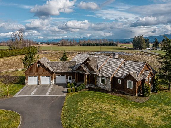 One of a kind Luxury living in Lynden, with views in all directions, exquisite northwest craftsman style home with log beam accents in desirable neighborhood just North of Lynden. No expense spared, custom built by the contractor for his family. Exceptional quality throughout (granite, hardwood, stainless steel, slate etc. )Incredible territorial views on 14+ acres of level, well drained land.Main level master suite with walk-in shower for two, sunken, jetted spa, ample walk-in closet and views of Mount Baker.Library/office with log beams, hardwood flooring and picture windows facing mountains.Additional main level bedroom with en suite and walk-in closet.Open floor plan with gourmet chef's kitchen, Viking gas range and refrigerator with center island, granite, cherry cabinets and hardwood flooring leading into massive living room with Berber carpeting, river rock, gas fireplace to the ceiling and log truss adjoining entryway.Covered patio ready to serve guests, directly off of the kitchen. Just a few steps down to your own fire pit, and paved garden.3-car attached garage.Basement could be used for rental income. It has two full-size bedrooms with a great room, full bath and completely finished bonus room. Additional storage room is heated and insulated. Full kitchen with all amenities. Access from within the garage or separate external staircase with patio large enough to entertain and still see the incomparable Mount Baker.36' x 80' steel building with 5 roll up doors, includes finished, heated 3-bays, bathroom and sink. Two bays uninsulated.Radiant heated floors, forced air gas heat, central A/C for the summer for year round comfort.Across the circular driveway is the pool building with dog runs on the North. Log accents to fit the house.Dog runs easily converted to any other use.Building features an 8500 gallon gas heated in ground pool, A/C and automatic dehumidification for the pool room. Radiant heated floors throughout. 14X14? finished loft upstairs could be caretakers room or ADUPrivacy and solitude yet minutes from town and all conveniences.