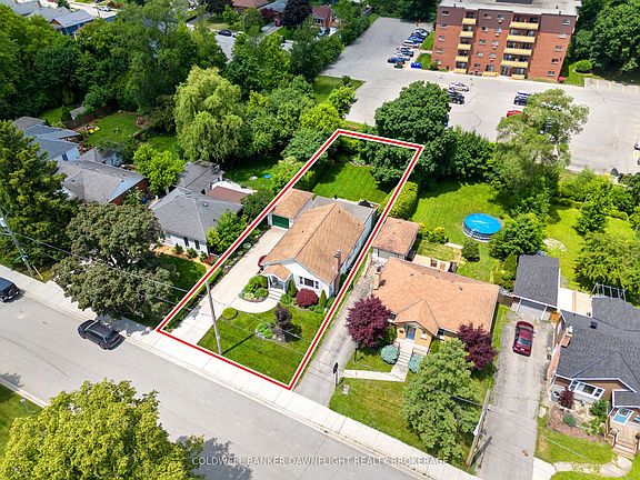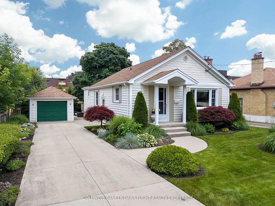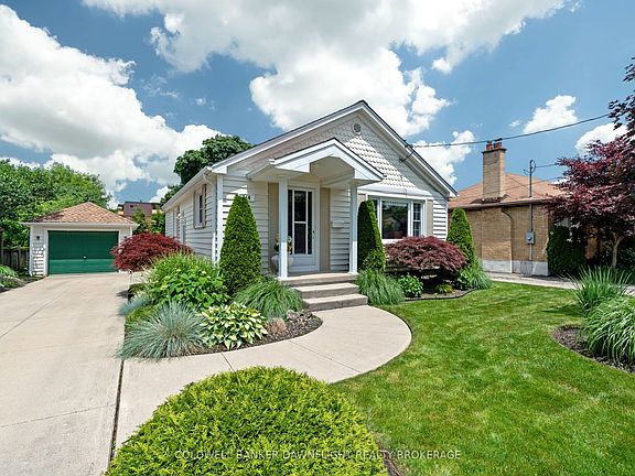 This beautifully maintained bungalow offers comfort, flexibility, and an unbeatable location in South London, within walking distance to Victoria Hospital. Whether you're a doctor, nurse, or healthcare professional, the convenience of being just steps from work is unmatched. With easy access to Highway 401, commuting is a breeze. Inside, the home reflects pride of ownership with rich hickory hardwood floors and oak crown moulding throughout the main level. The layout is thoughtfully designed and surprisingly spacious, with abundant storage solutions throughout. The main floor features two bedrooms, a four-piece bathroom, and a hallway with double closets that leads to a bright rear addition perfect for enjoying views of the beautifully landscaped and private backyard. A custom kitchen offers plenty of storage and functionality, ideal for everyday living and entertaining. A convenient side entrance from the driveway opens to a landing with stairs to the finished basement, providing excellent potential for a separate in-law suite or duplex conversion. Downstairs, you'll find a generous rec room, an additional bedroom or office, a three-piece bathroom, a dedicated laundry area, and even more storage. Pocket doors enhance flow and usability throughout the lower level. Outdoor living is just as appealing with a large two-tiered deck, a fully fenced backyard (with a single gate access point near the detached one-car garage), and mature landscaping that adds charm and privacy. This move-in ready home combines location, livability, and opportunity in one exceptional package.