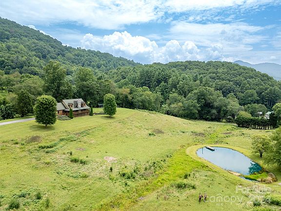 This is the property everyone is searching for—quality construction, breathtaking mountain views, unrestricted and usable land with pond and easy, paved access. Beautiful cedar-sided home on 7.84 pastoral acres, offering a perfect retreat while offering ultimate convenience. This 3-BR, 2.5-BA home features vaulted ceilings and a striking stone fireplace, adding warmth and character to the open floor plan. The gleaming wood floors flow throughout, enhancing the natural beauty of the space. A covered front porch is ideal for enjoying the captivating view. Main level, two-car garage and driveway parking for a crowd. The full unfinished basement offers additional garage door entrance and is super versatile as is the large upper level bonus room. The gentle sloping, fenced pasture and pond is ideal for horses or livestock. Conveniently located minutes to I-40, Maggie or Waynesville with no city taxes or HOA, this property provides the perfect blend of privacy and accessibility.