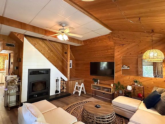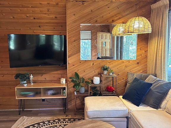 Water frontNestled into the treesWood burning fireplaceSpacious kitchenDining areaPartially covered deckFire pit area