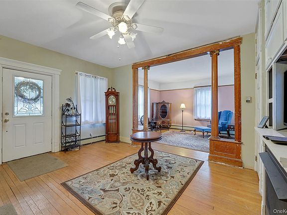Diamond in the Rough-restore this vintage home to its original charm. Victorian home built in the early 1900's, newer Roof & Siding(10-12 years), windows replaced (not basement) with Anderson Therma Pane (approx.20 years). Enter home from front porch into the Parlor with gas vent free fireplace with built-ins, curved doorways and adjacent to Living Room. Formal Dining Room with double glass doors and bay window with storage and all rooms having hard wood floors. Kitchen is unfinished and ready to make it your own. The kitchen includes a gas cooktop, refrigerator, dishwasher, microwave, engineered wood floor and ready to choose your design and cabinets. There is a half bath on main floor and a "back stairwell" to the 2nd floor. Three large size bedrooms on 2nd floor one with wood built-ins. Full bath located on the second floor. A large Primary Bedroom boosts of built-ins and has a unfinished Primary Bath with plumbing in place and includes most fixtures including a jacuzzi tub ready to be installed. Wood floors throughout most of the second floor. The third level is a full walk-up attic with tall ceilings with potential to finish one day or lots of room for storage. On the lower level a full unfinished stone basement which includes electric panel (120 amp), laundry area including a washer & dryer, slop sink and workshop area with access to the outside. Home has hot water heat with 5 zones and hot water heater 2003 and ceiling fans in Dining Room, Parlor, Kitchen, Primary Bedroom and Guest Bedroom.
