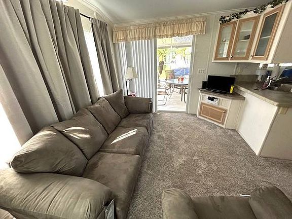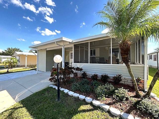 his charming 2008 park model home, fully furnished and ready to enjoy, is located in an active 55+ golf community. With plenty of natural light and a welcoming atmosphere, this 1-bedroom, 1-bath retreat has so much to offer. The covered carport is spacious enough to accommodate both a car and a golf cart side by side. There's also a convenient storage shed and a 10x14 front screen room, perfect for relaxing outdoors. The home also features an irrigation system to keep your landscaping lush and green. Inside, the open kitchen (5x10) features light stack cabinets and flows into the cozy dining room (6x8). The spacious living room (9x13) boasts a large bay window, providing beautiful natural light. The bedroom (9x10) has built-in cabinets and another bay window, offering a peaceful retreat. With double-pane windows and new furniture throughout, this move-in-ready home is a true gem. There's also a vacant lot behind the home, adding to its sense of privacy. This great home is a must-see to fully appreciate all it has to offer!