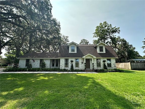 Charming 3BD/2.5BA brick colonial with stunning Ogeechee River views and a canopy of Live Oaks. Fresh exterior paint and new landscaping enhance the curb appeal, while a park-like lot and spacious rear patio make entertaining easy. Inside, enjoy energy-efficient windows, upgraded insulation, and rich hand-scraped hardwood floors. The kitchen features stainless steel appliances and granite countertops. Formal dining and sunrooms offer scenic river views. The oversized family room includes a brick fireplace with gas logs. Upstairs, bedrooms provide privacy; the primary suite boasts a walk-in closet and updated bath. A large laundry room offers ample storage and a utility sink. Located in an established community with optional pool membership and close to grocery stores and restaurants. Schedule your showing today!