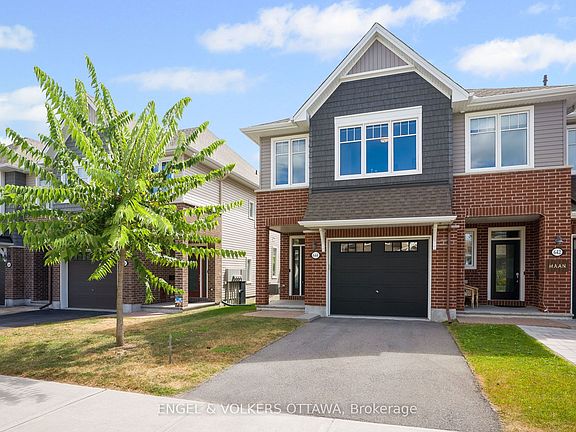 Welcome to this Tamarack end-unit townhome in sought-after Stittsville North - where the space feels more like a detached home. With over 2,100 sq. ft. of finished living space, this one has been beautifully maintained and thoughtfully upgraded. The main floor is bright and open, featuring a gorgeous kitchen with an oversized island, quartz counters, walk-in pantry, and high-end stainless steel appliances, including a smart fridge and gas stove. The living and dining areas flow seamlessly together, making it perfect for family time or entertaining. Large windows bring in plenty of natural light, and the southeast-facing yard offers extra privacy with no rear neighbours. Upstairs, the primary suite is a true retreat with a sunny sitting area, walk-in closet, and spa-like ensuite with glass shower and soaker tub. Two additional spacious bedrooms, a full bath, laundry, and a versatile loft, ideal for a home office or playroom, complete the second floor. The finished basement adds even more room to spread out - perfect for movie nights, a gym, or a cozy rec room. With an extra-wide garage, $30K in builder upgrades, and a prime location close to schools, parks, shopping, and the Kanata tech hub, this home checks all the boxes for family living.