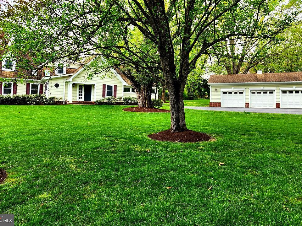 As you enter the driveway of this verdant and lush retreat situated on 1.6 acres imagine having your lawn party on a cool summer day. Pass by the three car garage with a side entry door and walk up the flagstone walkway to the covered flagstone porch and elegant wood front door. Gleaming hardwood flooring will greet you in t he 17 foot foyer along with recessed lighting, custom wainscot, chair rail. and crown moulding. Wide hallways lend a feeling of spaciousness and comfort with access to all the main level rooms. Leaving the entrance hall you can walk through a wide hallway with skylights which could be used as a caterer's hall for your entertaining. Access to the laundry room with tall cabinet, shelving, washer and dryer is from this hall as well as access to the kitchen and formal dining room . The kitchen boasts granite counter tops, 32 inch oak cabinets, a granite desk overlooking the back yard with cabinets on each side and all new stainless steel appliances. There is space for a table and chairs and/or stools at the counter and also a door to the back flagstone patio. A dignified richness shows in the dining room with it's chair rail, crown moulding and wainscot. The box bay with triple window lends a view of the yard and trees for your dinner guests while entertaining. A "tucked-away" office with built-in shelving, desk and filing cabinets is off the living room and able to be closed off with pocket doors . Wander into the living room from the kitchen hallway and you will see gleaming hardwood floors, a brick fireplace with insert and mantle, built-in shelving and cabinets, a ceiling fan and a sliding glass door to the flagstone patio in the back yard. The master bedroom suite is on this main level and access is from the main foyer. A wide hall with built-in floor to ceiling oak shelving and sliding glass door to the patio is a delightful way to enter the master suite. The cathedral ceiling with skylights lends a feeling of spaciousness and light along with the many windows and sliding glass door to the back yard. A walk-in closet with shelving and various rods is ideal for clothing management. Next to the closet is the master bath which has ceramic tile flooring, ceramic tile shower surround and a vanity with corian counter top and custom cabinetry. As you walk up the oak stairway to the upper level notice the second master suite with a separate sitting room or nursery. The master bath is located in this suite which could also be for an Au Paire. Two other bedrooms and a third bathroom are located on this floor. All bathrooms have ceramic tile flooring. Flooring on the upper level for all bedrooms is hardwood flooring. The location is ideal. The elementary school is a short five minute walk and shopping at the village is less than a mile. Grocery store, bank, gas station, starbucks, and many offices for personal needs will all make your life easy .