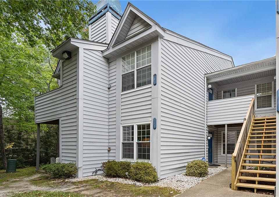 This quiet condo has 3 C's to offer: calm, cozy and central! With over 900 square feet, it features two spacious primary bedrooms with each having their own private baths. It's a great set up for roommates or a family. The open living space has a kitchen and a living room with a COZY fireplace. Step out to your private patio to enjoy peaceful views of the small creek. It's a wonderful dose of CALM right at home. Tucked away on the backside of the building this condo delivers privacy and quiet while still being CENTRAL to shopping, dining and the highway to head east to the beach or west to the rest of Hampton Roads!