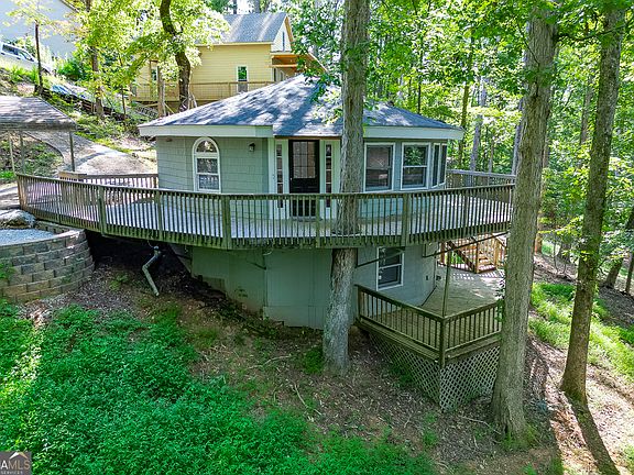 NEWER Roof, NEW HVAC, NEW Septic Tank, NEW Retaining Wall, NEW Flooring, Updated Master Bathroom. Your own TREE HOUSE on LAKE LANIER! 200 feet of beautiful shoreline - perfect for fishing, kayaking, canoeing, and more! Sunny living spaces, ceiling skylights, open-concept floorplan, covered parking, and continuous wrap-around deck. This home is perfect for an everyday residence, investment property, or a quiet weekend get away! No dock/permit.