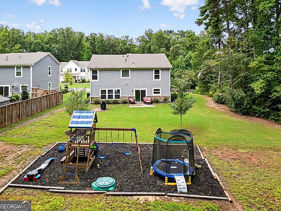Half an Acre of Fun, Right in Crescent Landing Stop scrolling-this is the backyard you've been waiting for. Built in 2020 and freshly painted throughout, this beautifully maintained 4-bedroom, 2.5-bath home doesn't just offer modern comfort, it delivers the Family Trifecta: style, space, and a massive, level half-acre lot that outshines the rest. From the charming front porch, step into hardwood floors and an open-concept main level bathed in natural light. The chef's kitchen shines with upgraded maple cabinetry, granite countertops, a large island, walk-in pantry, and a sunny breakfast nook-all flowing seamlessly into the family room for easy gatherings. Upstairs, retreat to an oversized primary suite with a spa-style bath featuring a double vanity, soaking tub, separate shower, and walk-in closet. Three additional bedrooms, a full hall bath, and a loft provide flexible living space for a playroom, office, or guest retreat. But the true showstopper is out back: a flat, half-acre playground of possibilities. Already equipped with a playset, it's ready for kids, pets, and epic backyard games-or dream bigger with room for a pool, firepit, and outdoor entertaining on a scale that nearby homes can't match. A 2-car garage adds everyday convenience, while the Crescent Landing community offers sidewalks, a playground, and a welcoming neighborhood feel. With GA-400, shopping, and dining just minutes away, this home is where big-yard dreams and everyday life finally meet.