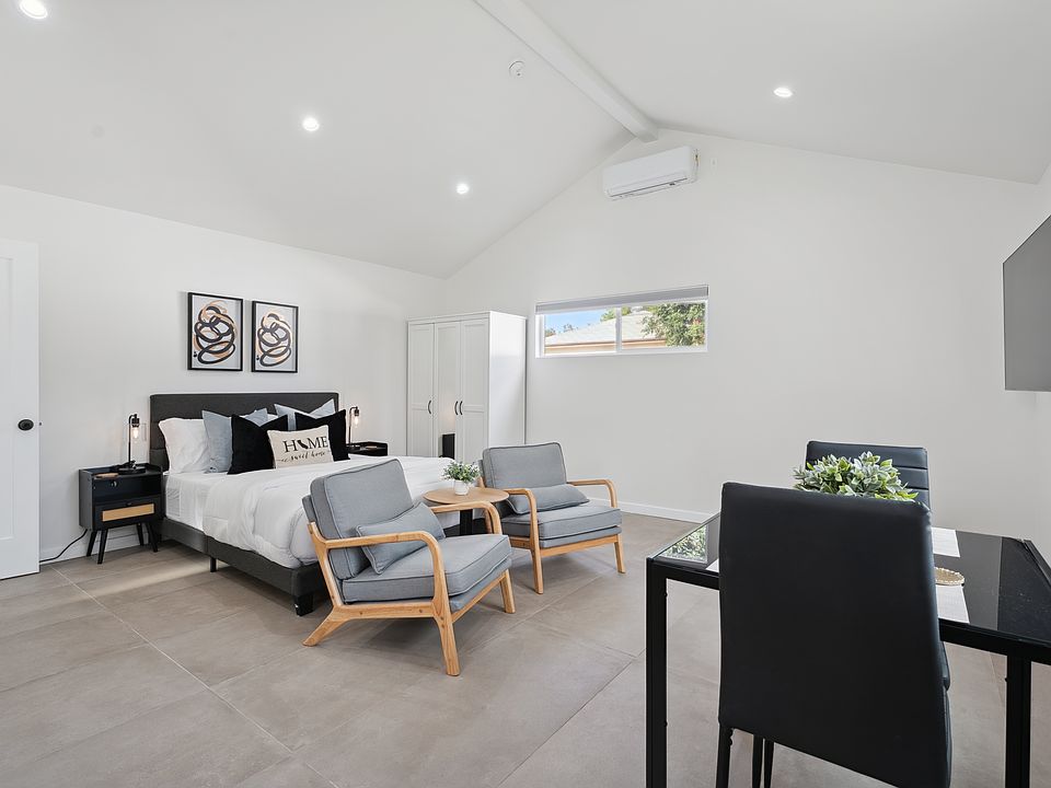 Fully Furnished Modern Studio ADU Prime Location! Welcome to this beautiful newly built and fully furnished ADU, perfectly located near major freeways for easy commuting while offering complete privacy and comfort. This modern studio unit is entirely separate from the main home, featuring its own private entrance Enjoy a bright open floor plan, elegant tile flooring, and a new kitchen equipped with stainless steel appliances and everything you need to feel at home. The unit also includes private laundry, central A/C, and a dedicated parking space for your convenience. Relax outdoors in your private seating area perfect for morning coffee or quiet evenings. Nestled in a prime, peaceful neighborhood, this move-in-ready ADU offers the perfect blend of style, comfort, and accessibility. Also, available for short term lease (minimum of 4 months). Owner pay for water and gas only. Renters is responsible for electricity.