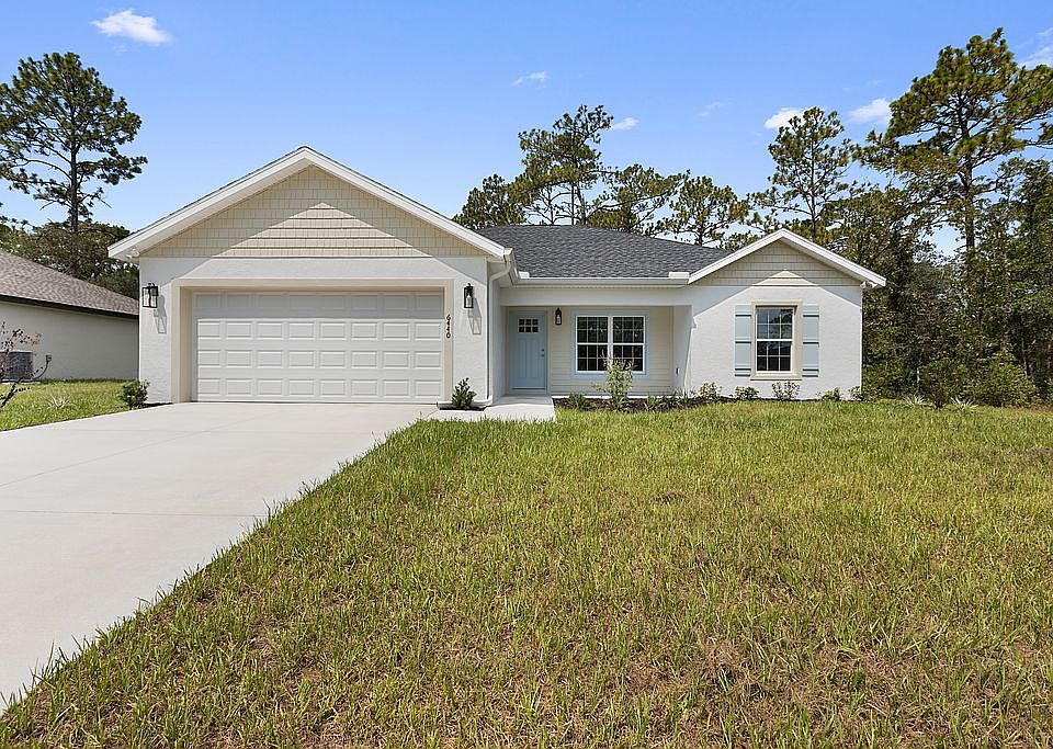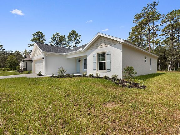 Brand new construction modern farmhouse nestled in the up-and-coming Citrus Springs community. This location is quiet and somewhat secluded. This stunning custom built 3 bedroom 2 bath + pocket office home offers the perfect blend of modern design and comfortable living. Prime location minutes away from N. Lecanto Hwy, the Suncoast Parkway, 30 minutes away from Ocala and the World Equestrian Center and HITS. This spacious, open concept floor plan offers ample natural light throughout the home, modern fixtures and fine finishes. MANY UPGRADES!! This new construction all block home features a split floor plan with vaulted ceilings in the main living areas. The heart of the home boasts a combination kitchen/dining room with a sit down island for guest seating. The chef's kitchen features quartz countertops, tile backsplash, top of the line Whirlpool appliances, upgraded shaker style cabinetry with soft close hinges and ample counter space. The kitchen and dining room flow into the expansive great room with large windows, blinds and a ceiling fan, making it perfect for entertaining. The luxurious master en-suite bathroom is a true retreat, featuring a tile floor, curb-less oversized walk-in shower with designer tile on the walls, a recessed shampoo niche, a beautiful pebble floor, dual vanity sinks, quartz countertop and single lever brushed nickel faucets. The master bedroom has blinds on the windows, a recessed tray ceiling and a ceiling fan. Not to mention the large walk-in closet with more than ample shelving and shoe storage. The second and third bedrooms are also great in size featuring large windows with blinds, closets with additional shelving and ceiling fans. The guest bathroom features a tile floor, shower/tub combo with tile walls, recessed shampoo niche, large mirrored cabinet for storage, quartz countertop and single lever brushed nickel faucet. The laundry room is larger than most and includes a wash tub, Whirlpool full size washer & dryer included. The garage is deeper than most and the air conditioning is tucked up into the ceiling. The exterior has a covered front porch, a massive 12’ x 14’ “covered” rear patio sitting on a fully sodded yard. The power is underground so no ugly wires coming from the electric pole. The home is serviced with city water and a standard septic system (no pump). This energy-efficient home boasts premium finishes, such as low maintenance and waterproof vinyl plank flooring throughout (NO CARPET), energy efficient LED lighting and double pane low-E vinyl windows with screens. North New Japan Terrace is a peaceful road and minutes away from N Lecanto Hwy and the Suncoast Parkway. Don't miss the opportunity to own this beautiful 2025 built NEW CONSTRUCTION home in a prime location. The builder is a 40 year Florida State Certified General Contractor who takes pride in what he delivers.
