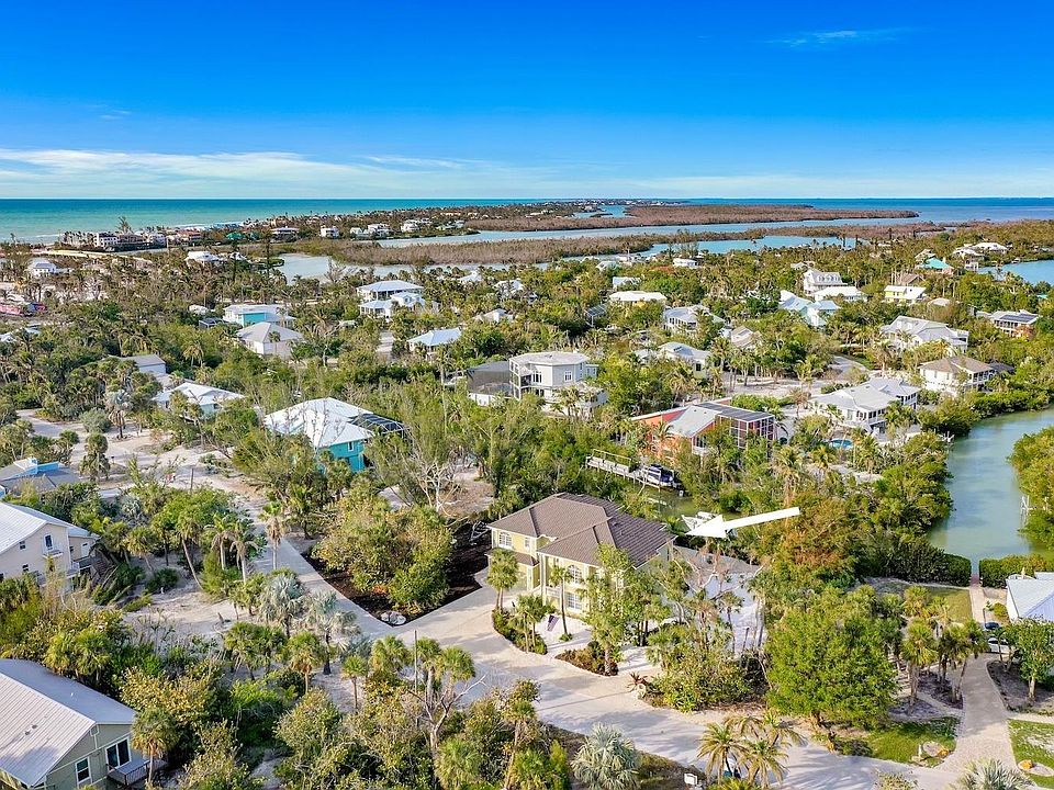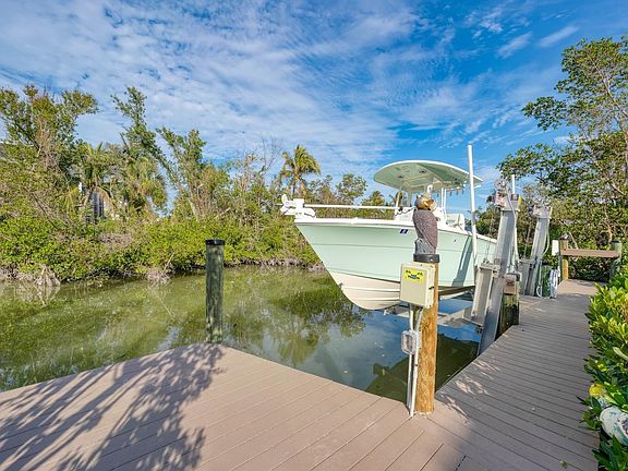 Boaters and beach lovers — this is THE ONE! Welcome to Your Tropical Retreat on Sanibel Island! $100K Price increase reflects the installation of all new Marvin impact windows and doors a homeowner cost of $142K! This stunning 3-bedroom + den, direct Gulf-access home offers the ultimate in island living. Located just minutes from the Bay and the Gulf of Mexico, your private composite wood boat dock with 7.0 K lb lift sets the stage for unforgettable days on the water — whether you're boating, fishing, shelling, or simply soaking in the serene beauty of Sanibel. Just steps from the beach, you can hear the waves from your front door, while your back deck offers front-row seats to Florida’s incredible wildlife — dolphins, manatees, nesting birds, and more. Perfectly positioned to capture breathtaking sunrise and sunset views, this home invites you to live in harmony with nature. Inside, you'll find a meticulously maintained and thoughtfully designed layout featuring soaring ceilings, plank tile flooring throughout, and abundant natural light. The spacious kitchen is a chef’s dream — complete with modern finishes, generous counter space, and a welcoming flow for entertaining. The primary suite is a luxurious sanctuary with ample closet space, a separate soaking tub, a custom glass walk-in shower, and gorgeous quartz countertops embedded with sea shells — a true coastal touch. Each of the three bedrooms includes walk-in closets for plenty of storage, while the den offers versatility as an office, gym, or easily a fourth bedroom. A 2-car attached garage provides plenty of space for vehicles and toys, and an expansive lower-level storage/workshop area is ideal for hobbies or stowing all your gear. Built solid with concrete construction and a newer metal tile roof (2022), this home is designed to weather the elements with ease. The Seller has already paid for premium Marvin Coastline impact windows and doors, scheduled for professional installation by Sanibel Glass on December 15th — delivering peace of mind and added value. Survey available that shows outline of pool. Located on Sanibel’s desirable west end, where “island time” begins, you’re steps from the beach, close to over 26 miles of bike paths, and just minutes from the restaurants and shops of Captiva Island. This is more than a home — it’s a lifestyle. Experience the very best of island living today.