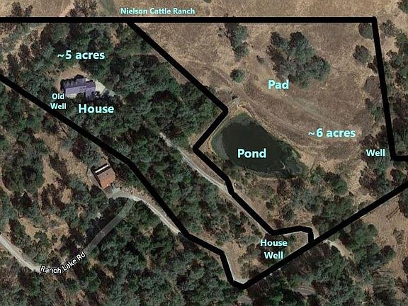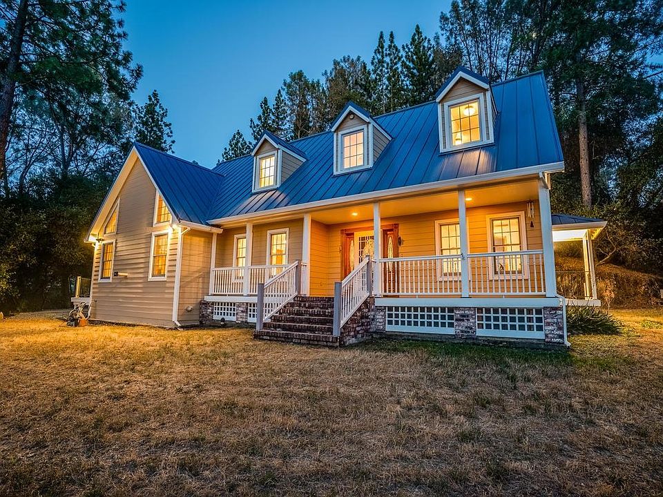 End-of-the-road paradise, perfectly appointed, this traditional 3 bed, 2.5 bath (plus office + bonus room) overlooks idyllic foothill countryside resting on 10+ acres in 2 parcels. Timbered Northern and open Southern slopes form your private canyon above historic cattle ranch. Year-round 3/4 acre stocked pond and seasonal stream. Entertainer's dream, the family/kitchen combination features vaulted/open beam ceiling, newly refreshed hardwood floors, two ovens and oversized island with gibraltar countertops. Fresh carpet throughout. Main bedroom (upstairs) en suite is recently remodeled and sure to please with a huge shower, skylights over dual sinks, and multiple closets. House is hardened with concrete siding, Azek decking, metal roofing, and recent brush mastication completed. Store your boat and other toys with the attached, extra tall garage and carport. This unique location provides infrastructure and space to garden, build a shop and enjoy all that the property has to offer.