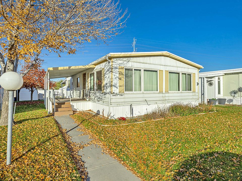 Welcome home! This well-maintained double wide is located in a desirable 55+ community and offers comfort and convenience throughout. Enjoy the spacious covered patio, carport, and storage shed-perfect for outdoor living and extra space. The home features a full sprinkler system and comes fully equipped with all appliances included. Move right in and start enjoying easy, low-maintenance living today! "All footage and measurements are deemed reliable but not guaranteed. Buyer is advised to obtain their own measurements and complete due-diligence to their satisfaction."