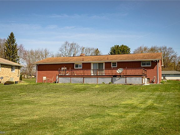Very nice 3 bedroom, 1.5 bathroom all brick ranch sitting on a .45 acre lot in a fantastic neighborhood with a private lake in East Canton. The main level features a large living room with stone fireplace, a kitchen with plenty of cabinet and counter top space, an eating area with a sliding glass door leading to a huge (16 x 36) deck overlooking the back yard and gorgeous views of the lake. This is a great space to entertain family and friends and enjoy those peaceful summer evenings by the water. There is a nice sized owners bedroom with hardwood floors, 2 more ample sized bedrooms and an updated full bath with double vanity. The lower level has a finished rec room with carpet, a bonus/exercise room and a 1/2 bath with potential adding approx. 370 sq. ft. of usable living space. Other features include a 2 car attached garage with opener, a cement patio, a newer high efficiency gas forced air furnace and A/C, vinyl replacement windows, a cement driveway and more. This is a fantastic lo