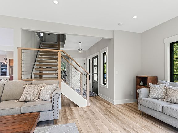 Stunning custom home on 2 private acres in Hudsonville Schools! The exterior features painted LP SmartSide, stonework, and Cumaru (Brazilian hardwood) accents. Out back, enjoy a top-of-the-line custom deck and patio surrounding a pool—perfect for relaxing or entertaining. Inside, a floating staircase with white oak treads and a cable railing system sets the tone for the designer finishes throughout. The gourmet kitchen boasts custom cabinetry, quartz counters, a 36'' Monogram range, and a commercial-grade fridge/freezer. A hidden walk-through pantry adds style and function. The walk-out lower level includes a custom sauna for the ultimate home wellness setup. Every detail in this home has been thoughtfully crafted with high-end materials and timeless design. Rare opportunity to own a one-of-a-kind estate with luxury finishes inside and out. Schedule your private showing today!
