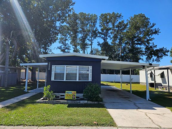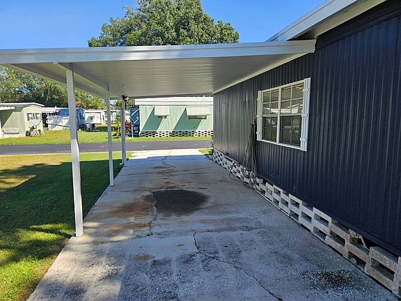 WOW Rehabbed Home Ready for you!!! Welcome to this two-bedroom one bath home single wide home. Roof is pan-roof, call for details. Featuring new exterior paint, new bathroom flooring, covered patio and carport. This home has two window units, one is 1yr old and the second is 2yrs old. Comes with stackable washer and dryer, refrigerator, stove and microwave. Monthly lot rent is an incredible $640.00 per month. Close to all amenities, live the Florida lifestyle!!! *** Sales Price Does Not Include Tax(s), Tag and Title Fees etc.*** ***All new residents must pass criminal and credit background checks and have a verified income of at least 2-3 times the lot rent. *** **Occupancy only after park approval, having signed the park lease agreement, payment for lot rent is received by the management and any pro-rated lot rent that is due to Mobile Home Broker. Then keys will be released to buyer(s). Title(s) and registration(s) will be delivered on or before 30 days before the above requirements, other contractual conditions may apply. ** All listing information is deemed reliable but not guaranteed and should be independently verified through personal inspection by appropriate professionals. Our company cannot guarantee or warrant the accuracy of this information or the condition of this property. The buyer assumes full responsibility for obtaining all current rates of lot rent, fees, and pass-on costs. Additionally, the buyer is responsible for obtaining all rules, regulations, pet policies, etc., associated with the mobile home park community from the park manager. Our company is not responsible for quoting said fees or policies." This mobile home is being sold in AS-IS Condition Cash Only Absolutely NO Financing