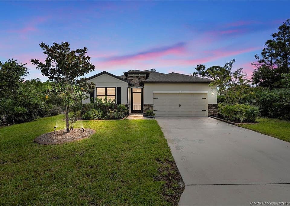 Fall in love with endless sunrises from your back patio, beautiful preserve views that surround 3 sides of the home, & the privacy & security this community has to offer. Welcome to The Preserve at St. Andrews, a newer construction, gated DR Horton community. Built in 2021, this 4BR, 2BA CBS home is located on a premium corner lot, at the entrance of a cul-de-sac. Surrounded by serene preserve views visible from most rooms, this desirable location offers both privacy & a peaceful backdrop. The open, split-bedroom floor plan features modern finishes, plantation shutters throughout, a whole-house H2O softener system, & generator hookup. The thoughtfully designed landscaping & paver patio enhance the home’s curb appeal & seamlessly complements the screened back patio. The home is within walking distance to Publix & just minutes to St Lucie West & Tradition where you can find shopping, dining, & more. This home combines privacy, convenience, & comfort all in one ideal location.