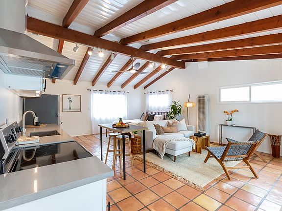 Welcome to your own private Westside oasis! This beautiful bungalow has just been remodeled and reimagined from top to bottom. The expansive space, cathedral ceiling, and Saltillo tile will take you away to a place of relaxation and inspiration. With approximately 2,000 sqft of private outdoor space surrounded by King palms, Queen Palms, giant Birds of Paradise, Canary Island Palm, lush landscaping, and Cyprus and Pine trees dotting the skyline you feel like you have been transported back to your own private island home. With an expansive patio, large yard, and oversized (PRIVATE AND SECURE) parking pad (2+ cars or recreation use) you will have the ability to really enjoy the outdoor California lifestyle. The home also comes with new appliances, outdoor water hookups, and an upgraded sprinkler system for continuous maintenance of the landscape. DISCLOSURE: The owner is a licensed real estate agent. The owner pays for landscaping services. Rent does not include utilities. The owner will provide a storage shed at no cost. See photos for current parking pad storage. The property is available unfurnished. DISCLOSURE: The Owner is also a Realtor and Licensed real estate agent.