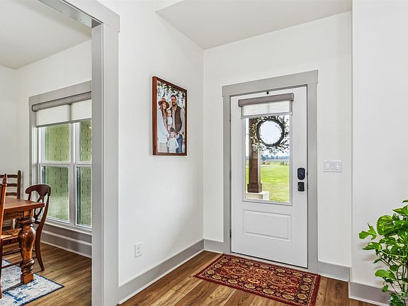 Situated on a spacious 2.5-acre estate, this custom-built home, completed in 2023, exemplifies a blend of elegance and contemporary design. The residence features three generously proportioned bedrooms and two bathrooms, complemented by a dedicated office space that can function as a fourth bedroom. Upon arrival at the gated property, one is greeted by a fully fenced yard, ensuring both privacy and security. The home is equipped with a tankless gas water heater and spray foam insulation, enhancing energy efficiency. The brick exterior, painted in a soft white with green and wood accents, is enhanced by fresh landscaping, contributing to its curb appeal. The kitchen, designed for culinary enthusiasts, includes custom cabinetry with soft-close mechanisms, granite countertops, a walk-in pantry, and stainless-steel appliances. A window above the sink provides a picturesque view of the backyard, perfect for enjoying cozy evenings around the firepit. The master suite offers a private retreat with two expansive walk-in closets and a trey ceiling. The en-suite bathroom is designed for ultimate relaxation, featuring an oversized tiled shower with a glass enclosure, a separate soaker tub, and dual sinks. An integrated Bluetooth speaker system allows you to enjoy music or audiobooks during long soaks. The living room showcases refined taste, with upgraded stylish lighting and an exposed beam accent on the vaulted ceiling. The additional two bedrooms are spacious, each with walk-in closets, and share a large guest bathroom. The property also includes a negotiable chicken yard and a 12 x 24 shed, adding versatility. Additionally, this home is fully equipped for an RV site and has a dedicated electrical circuit for a future pool. Located just north of Milton's new amenities, this home seamlessly blends modern comforts with timeless elegance. Schedule a visit to experience it firsthand.