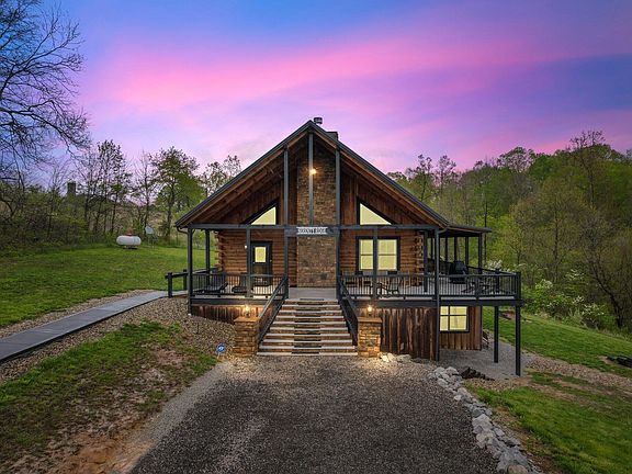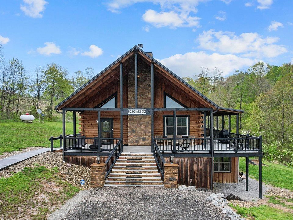 This luxury lodge is just gorgeous! Built in 2019 with stunning views of the 9.78 acres & beyond. The 1st floor features an open concept layout with a gourmet kitchen, large living area with floor to ceiling fireplace, dining area & there's even room for a pool table! Go up the beautiful open staircase to the primary bedroom, bathroom & private balcony. Downstairs have a seat at the bar or try your luck at the poker table. Outdoors you'll find lots of deck space to enjoy, hot tub, & firepit area. And the best for the last, the inground heated POOL with ample seating and shade under the gazebo area! Close to many of the famous Hocking Hills activities. The property is currently operating as a successful high-income producing short-term rental being sold turn-key.