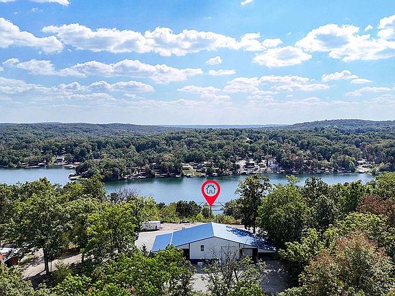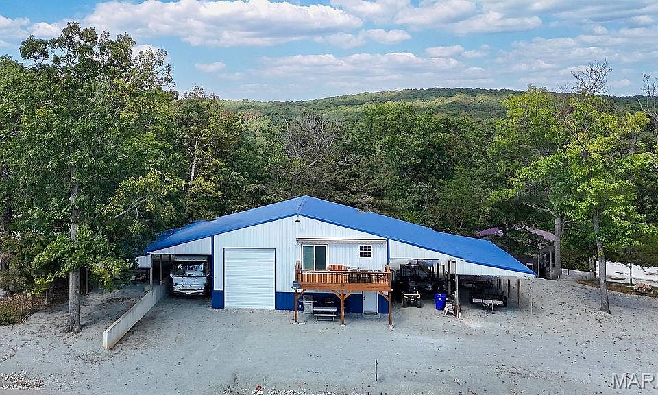 A one-of-a-kind Lake View Barndominium that combines rustic charm, with modern smart-home technology. Featuring one bedroom, one full bath and an open concept design. This property offers both style and comfort. Enjoy the incredible lake views from your own home in this gated lake community just 45 mins south of St. Louis. This home includes a 40x45 attached drive through garage plus three extra garage bays, providing exceptional space for boats, ATV/s, RV parking and all your lake toys. The thoughtful floor plan highlights natural finishes & modern design. Residents enjoy a resort- style amenities including a marina, fishing ponds, sandy beach, swimming pool, clubhouse and multiple parks. Whether your seeking a full- time residence or a the perfect space for weekend getaway, this home and shop space delivers versatility and design. The home residence space is on the upper level but main level is ready for your personal touch finishes for extra livable space but offers the first full bathroom set up already. Home is located on 3 lots with a nice backyard area too for privacy. The seller is ready for their next adventures- don't miss this opportunity to own a truly special lake property. Bring your buyers and bring us an offer! The seller owns 3 additional lots across the street together-lake view, he is considering selling too with an a strong offer.