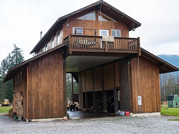 10 usable acres in the Nooksack River Valley. 4,000 sq ft. heavy timber/barn style home with 1,000 sq ft. 2 bedroom, 1 bath finished space, and potential for lots more. Finish one of the 500sq foot lofts (rough framing and plumbing already done) for a home office, second bathroom or more bedroom space. Inside the home boasts hard wood flooring, master bedroom balcony, matching granite countertops and hearth stone, custom hickory cabinets, vertical grain fir trim, heated bathroom floor, and lots of windows to enjoy the amazing views. Outdoors on this almost rectangle 440'/990' property you will find a pond, hay field, landscaping, orchards of over 50 young trees including apple, pear, cherry, and peach. 40+ blueberry plants. 7 outdoor frost free hydrants for gardening or livestock, 35gpm deep well, 2nd power meter and service in place for potential future buildings, fully fenced, aprox 440' x 990', Horse shelter, with riding trails for your horses or other outdoor sports available by simply, stepping out the gate. Property is 100% usable would make an excellent blueberry farm or wedding venue. Currently used as a hobby farm, and shop for home business. aprox Property is occupied, so please call first to schedule viewings. budgeted to pay 2% + to a buyers agent. home number 360-599-1360