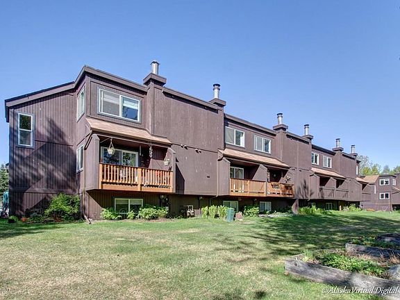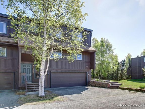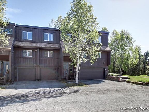 Great views of the Chugach Mtns overlooking the greenbelt! Well maintained unit with a fireplace, extra storage in the garage, laundry room, large eat in kitchen and spacious living room. Great views throughout! Close to parks and trails!