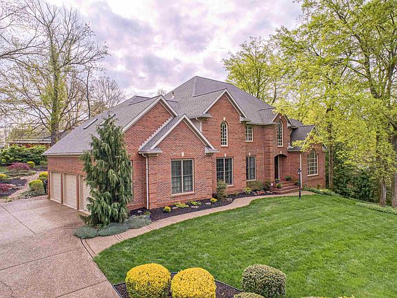 Check out this captivating home by the Ohio River and situated on the quiet, cul-de-sac sanctuary that is Belle Rive Drive. With 4 bedrooms, 3 full baths, and 2 half baths, this home provides ample space for a comfortable and functional living environment. The combination of a picturesque setting and well-designed interior features makes this home a truly captivating space for residents and visitors alike. Upon entering the grand foyer, the family room and the formal dining room stands to your left, adorned with elegant wainscoting and a captivating chandelier. On the right, a home office space awaits, featuring a large window and spacious closet. The foyer leads seamlessly into the living room with its impressive two-story ceiling, gas fireplace, stunning backyard views, and detailed woodwork. Adjacent to the living room is a well-positioned half bath, ideal for accommodating guests. The updated kitchen with granite countertops, custom cabinetry and stainless steel appliances offers a sleek and modern look. The inclusion of a breakfast nook space adds a cozy touch to the room. The nearby laundry room with counter space and cabinetry provides convenience and there is an additional half bath. The owner suite offers a luxurious escape with new carpet and an updated en suite bathroom. The bathroom boasts a twin sink vanity, walk-in shower, and a Kohler 72-inch bubble massage tub. The upstairs area of the house features the remaining bedrooms, with two sharing a jack and jill bathroom, and the third bedroom having its own ensuite bath accessible through the hallway. Finishing the upper level is a spacious bonus room with two generous storage closets. The outdoor space with an open patio, water feature, and private backyard is an ideal setting to unwind and enjoy nature. The patio provides a comfortable spot for relaxation, while the water feature adds a soothing ambiance. The private, award winning backyard offers seclusion, allowing for peaceful moments away from the hustle and bustle of everyday life. The design of this home is nothing short of incredible, offering a blend of style and functionality that is truly impressive and has been meticulously maintained and updated. Don't miss the chance to make this incredible home yours.