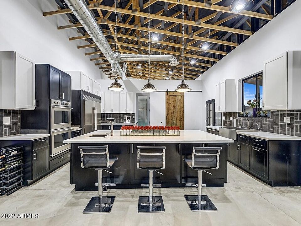 This custom home was built with love and attention to detail in 2017. Features include No HOA - 4 bedrooms 3.5 Bathrooms. The air conditioned 3rd car garage room currently being used as an Art Studio could be easily converted back to a garage space if needed. A desirable great room floor plan with open vaulted ceilings, custom lighting and concrete floors throughout. A large chefs kitchen features an oversized island, 48-inch professional stainless refrigerator, 36-inch professional cooktop, double ovens, built-in microwave and reverse osmosis. The oversized master with En-Suite bathroom and a separate exit to your resort backyard. There is a large covered patio just off the family room and kitchen with custom lighting that opens to huge outside kitchen island with a built in BBQ. This home is an entertainers dream and is perfect for enjoying Arizona's sunny weather and outdoor living. The gorgeous self-cleaning heated pool and spa with water feature and color lighting. The easy maintenance synthetic turf, desert designer landscape, plus an outdoor movie projector complete your own private resort minutes from downtown Scottsdale.