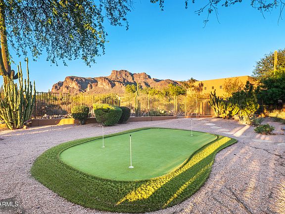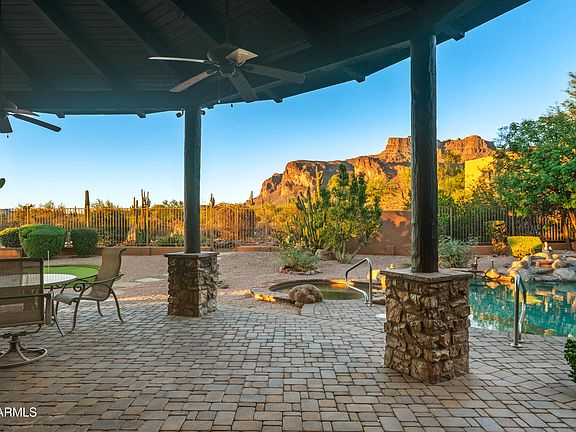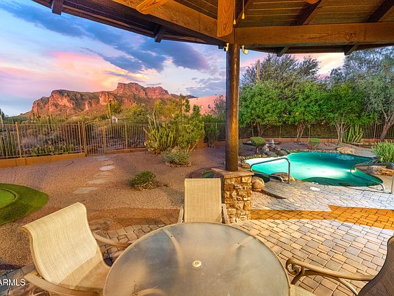 Wow! SPECTACULAR Southwest Style Home with Breathtaking CITY LIGHT & MOUNTAIN VIEWS! *** PRIVATE RESORT BACKYARD offers Updated Pool & Spa, Waterfall, Outdoor Kitchen with Granite & Built-in BBQ, Putting Green, Huge Covered Patio, Pavers, Expansive Covered View Tower and Observation Deck with STUNNING PANORAMIC SUNRISE & SUNSET VIEWS! *** You'll also appreciate the GENEROUS PAVER DRIVEWAY, Gated Courtyard, Deep 3.5 Garage with separate storage/workshop/man cave, FABULOUS DUAL OWNER SUITES, Chef's kitchen boasting Wolfe dual fuel range, subzero fridge, upgraded cabinetry, gorgeous tiled backsplash, granite counters, separate prep sink, & huge island plus a Large Den with Gorgeous Built-in's! ***NEW POOL HEATER INCLUDING & SOME FURNISHINGS Negotiable. This is a ... Must See Home to appreciate the ***IMPRESSIVE QUALITY and MANY UPDATES through-out including... New Pebbletech (2025), Paid House Solar (2022), Custom Cabinetry (2021), New Windows(2019), Paid Solar Pool(2017), Gorgeous Cabinetry & Doors, Beamed Ceilings through-out (10" Spruce & Natural Log Beams), Fruit Trees, 250 Gallon Propane Tank ......the list goes on and on! ***Conveniently Located, close to WORLD CLASS HIKING and Gold Canyon Golf Resort, which offers two 18-hole Championship golf courses (Dinosaur Mountain and Sidewinder) and Expansive PATIO DINING with amazing golf and mountain views! ***Nature lovers will ENJOY the nearby 2.9 million acres of Tonto National Forest wilderness, hiking, off-road trails plus four beautiful, pristine lakes too! Conveniently located just 35 minutes from Sky Harbor Airport and 20 minutes from Mesa Gateway Airport and San Tan Village Shopping & Dining! ***You'll LOVE the GOLD CANYON LIFESTYLE!