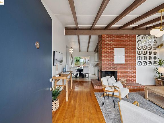 With plenty of vintage flair and modern charm, this El Cerrito Mid-century Modern gem is ideally situated just a few short blocks from BART's El Cerrito Del Norte station. The single-level layout offers seamless indoor-outdoor living, with a spacious backyard featuring a deck and terraced gardens—perfect for entertaining or simply unwinding. Inside, vaulted ceilings and oversized windows create an open, airy atmosphere, with plenty of natural light filling the common living areas. The home also offers captivating bay views, including glimpses of the Bay Bridge and San Francisco skyline. Practical and updated, the property includes a large two-car attached garage with ample storage, a new furnace, and a new roof installed just last year. The sewer lateral is also compliant and a new 200 amp electrical panel is pending installation. Experience what locals already know - living in El Cerrito offers the perfect blend of suburban tranquility and urban convenience. Enjoy a thriving local food scene, with unique eateries and cafes, as well as easy access to hiking and biking trails in the nearby hills.