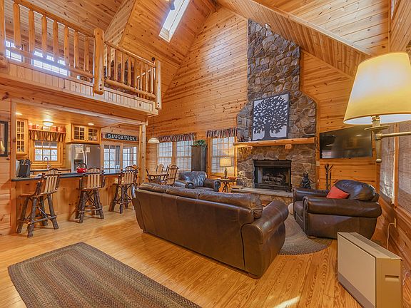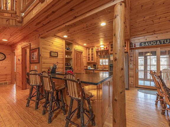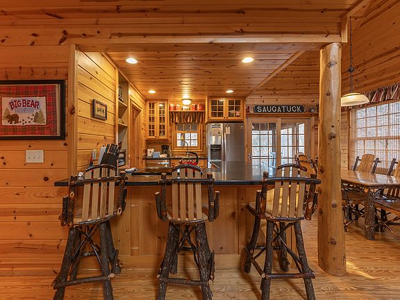 This is not a long-term rental it is only available until the beginning of May. Kingfisher Cove unit #16 (Big Bear Cabin) is located in this wonderful community of 29 luxurious cedar log cabins. Nestled in the woods surrounding no-wake Goshorn Lake. The "up north" feeling cottages are only two minutes from downtown Saugatuck. A crafted floor plan that features three bedrooms (including a fabulous master suite), two full baths, an all-wood interior, a great room with a towering stone fireplace, a cozy loft that acts as a sitting room and TV area, an open kitchen and a dining area with a view. Huge screened-in porch in back with a full-size hot tub or sit on the front porch. Lots of outdoor and indoor things to do! Owner pays for all utilities
