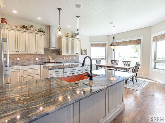 This premier 83-acre Gem County equestrian estate boasts THREE complete residences, professional horse facilities, and direct back-gate access to 40,000+ acres of BLM land offering unlimited riding and recreation. The stunning main residence features 4 bedrooms and 3.5 baths with premium finishes throughout, propane fireplace, battery-powered shades, theater room,,3-car garage and covered patio.3 bedrooms include full ensuite bathrooms! A 2,129 sq ft second home provides 3 bedrooms and 3 baths with dual solar-heated water system and mature trees with water feature. The 2,940 sq ft shop houses a 940 sq ft apartment with bedroom, bath, full kitchen, laundry, pellet stove, and optional in-floor heat. Professional equestrian facilities include a 16-stall barn with bathroom and tack room, covered round pen, sprinkler-equipped outdoor arena, and roping chute. Multiple pastures with welded pipe fencing and heated waters support operations, plus covered hay storage and grain bin. Two Zimmatic pivots and 10 big gun sprinklers with 75 HP pump handle irrigation for hay production and grazing, while hand lines support an optional rotational crop on the West end of the compound. Panoramic Boise Mountain and Owyhee views include Bogus Basin's night skiing lights. Minutes to I-84.