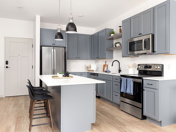 Lynvue's alcove, studio, 1, 2, and 3-bedroom floor plans were expertly designed to maximize space. Each apartment home is filled with natural light, open-concept contemporary kitchens and in-home washer and dryer. Upgraded hand-picked finishes include-wood inspired flooring, tile backsplash, and quartz countertops that create an upgraded living experience.
