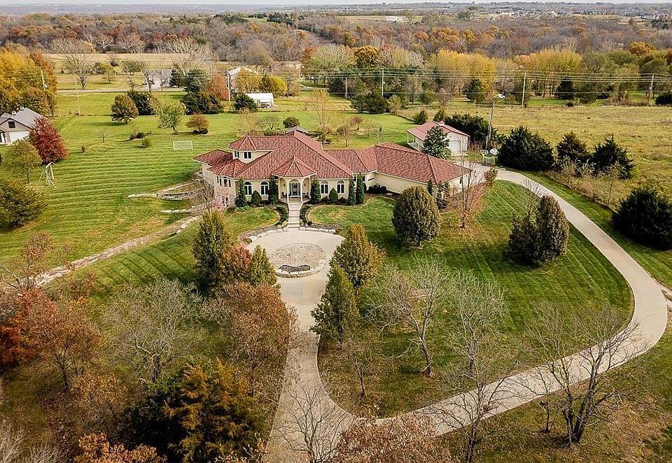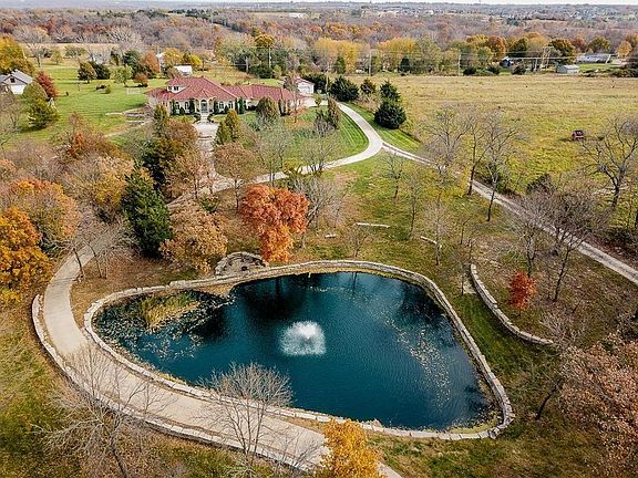 Stunning private estate home on a 5 acre lot. Tree lined driveway with water feature in the front pond takes you up to the home. 3 car garage with detached 2 car garage equipped with electrical (could be a great workshop). Master with laundry on the main. Master bath features his and her sinks with spa-like steam shower and large jetted tub. Massive gourmet kitchen with double oven perfect for hosting dinners. Great room has soaring ceilings. Upstairs loft office has incredible view of the KS river. Full kitchen in the walkout lower level. Tile roof was installed in 2017 and has a 50 year life. Plenty of storage space in the lower level that is being used as a gym. Professional pictures coming soon. Current exterior photos are of previous listing.